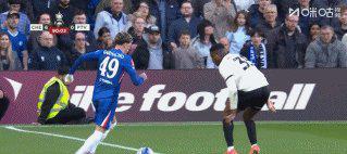 82’上演切尔西一线队首秀的17岁英格兰前锋麦奎因直塞,加纳乔射门中柱,埃斯特旺补射得手,切尔西6比0。